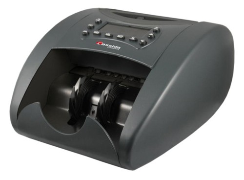 Возможности счета Cassida Conceptа работает на трех скоростях (900, 1200 и 1500 банкнот в минуту), выполняет функции пересчета, фасовки, суммирования и детекции банкнот (USD/EUR/RUR). Для пересчета и проверки подлинности необходимо выбрать соответствующий валютный режим, или отключить данную функцию при работе с другими валютами. Помимо проверки МГ и УФ-защитных признаков, аппарат способен определять ошибки пересчета: целостности и цепочки банкнот, размер билетов. В отличии от аналогичных устройств своего класса, Cassida Concepta имеет механическую систему определения сдвоенных купюр. Эргономические свойства Производитель уделил внимание и эргономике. Для хранения инструкций предусмотрен встроенный контейнер, что позволяет владельцу всегда иметь под рукой необходимые в работе материалы. Рукоятка для транспортировки может быть использована в качестве направляющих для банкнот при загрузке большого количества наличности в подающий карман. Впервые применен LCD-экран с черной подсветкой. Он удобен для чтения, имеет высокое разрешение и контрастность. Панель управления оснащена удобными крупными кнопками. Нельзя не отметить стильный и современный дизайн счетчика, вписывающийся в любой интерьер рабочего пространства. Режимы работы: – Режим пересчета – Режим фасовки – Режим суммирования – Режим калькуляции – Детекция на подлинность – Детекция ошибок пересчета – Мультивалютный режим Режимы детекции: – УФ ультрафиолетовая детекция – МГ магнитная детекция (для USD) – Mеханическая детекция сдвоенности – Детекция целостности банкнот – Детекция цепочки банкнот – Детекция по размеру